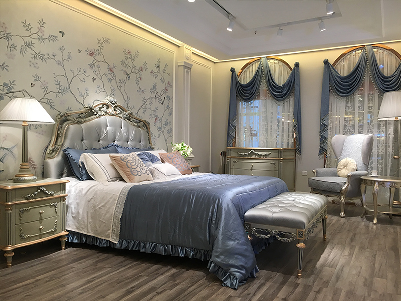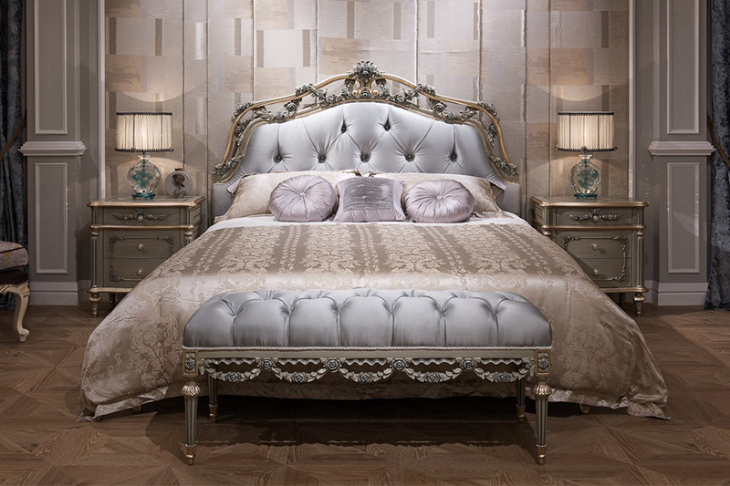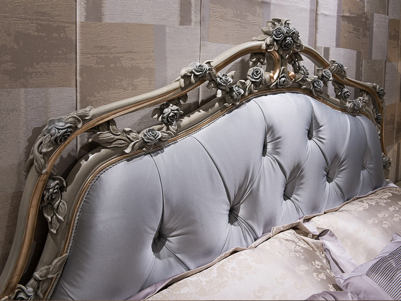 Grey Upholstered Headboard King Frame Handcarved Bed