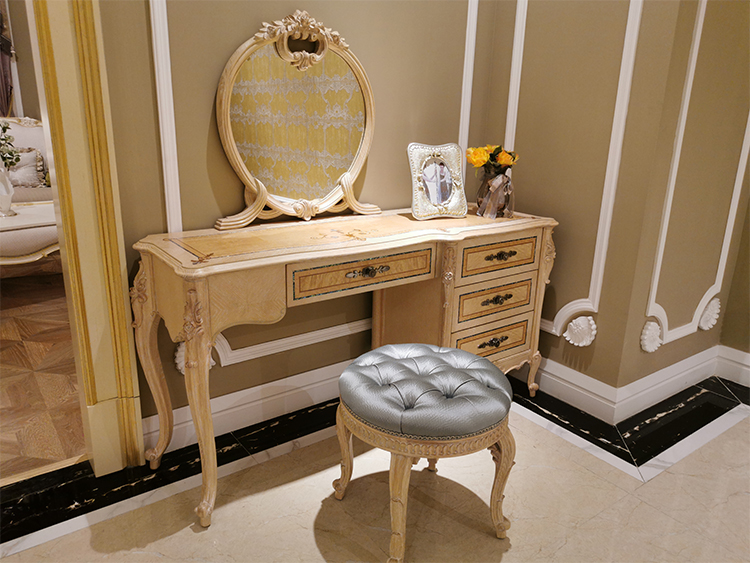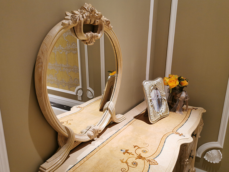 Ash Wood 4 Drawer Carving Vintage Dressing Table Mirror