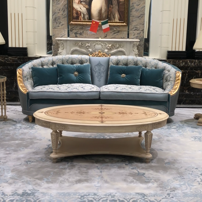 Ash Wood Antique Oval Shaped Living Room Coffee Table