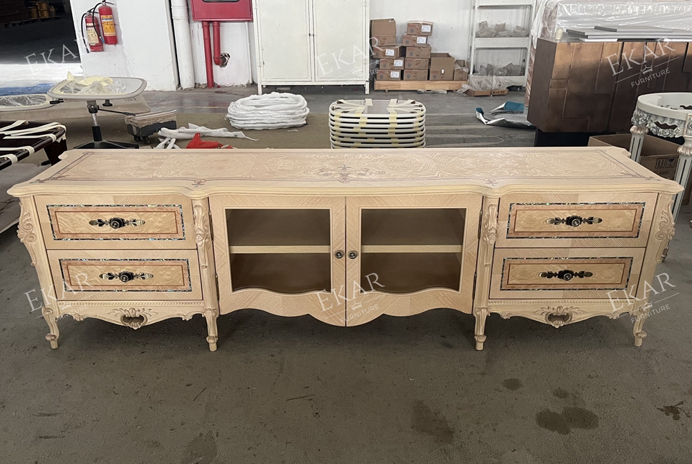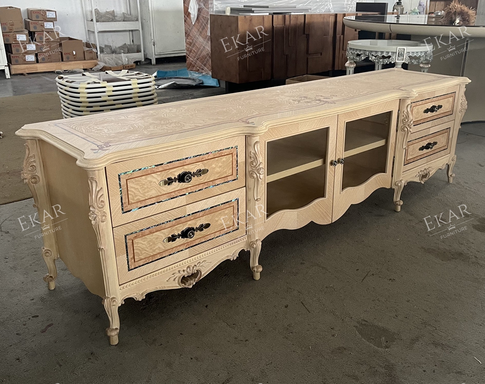 Classic European Style Carving Living Room Wooden Tv Stand