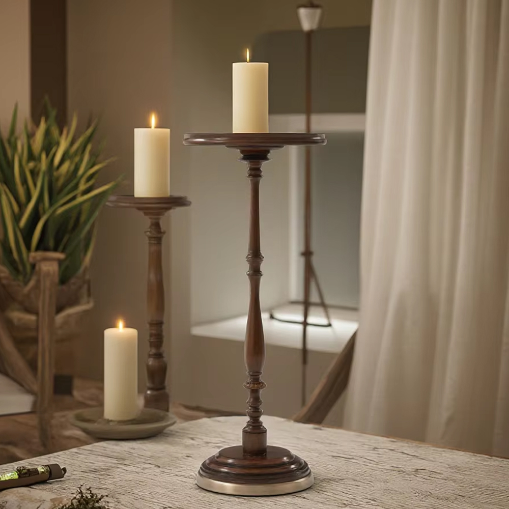 Classic Solid Wood Round High Side Table for Living Room
