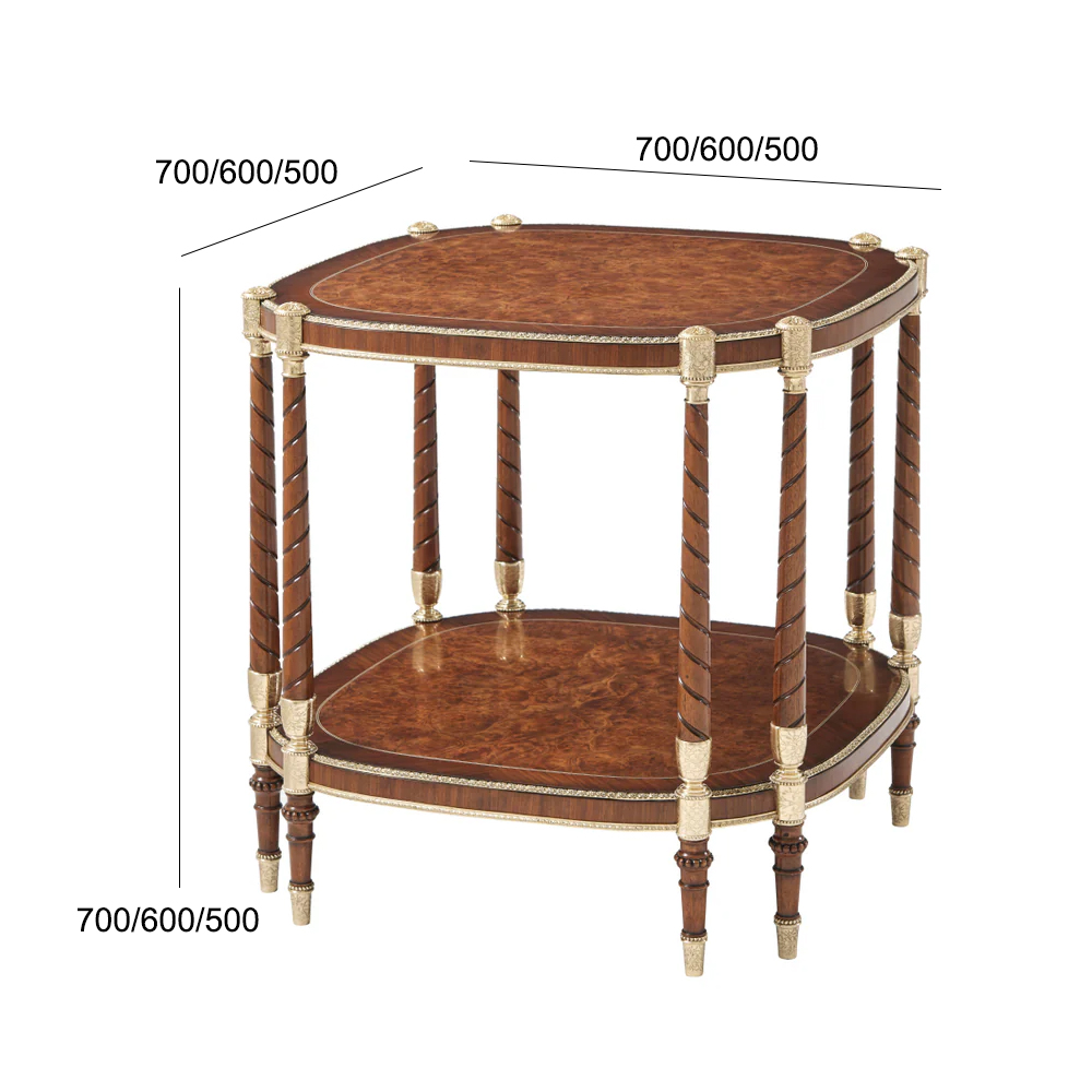 This solid wood side table features classic design and metal inlay detailing, offering both style and functionality for your living room.
