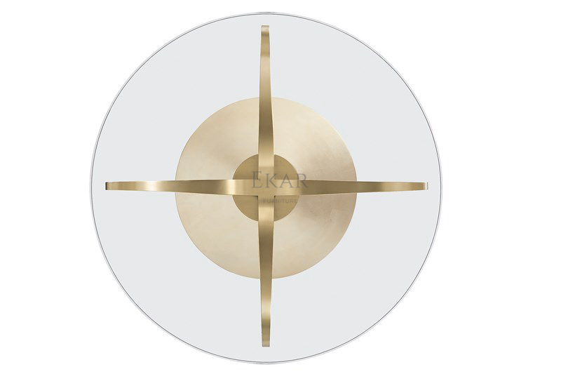 Looking through the glass of this glamourous round dining table is like looking into the center of a flower. Its shapely pedestal is lustrous in Champagne Gold and complemented by a Golden Blonde leaf base. A 60-inch glass top creates a compelling aesthetic that feels substantial yet visually light. Perfect for everything from casual dining to the most formal affair, its bold style is timelessly elegant.