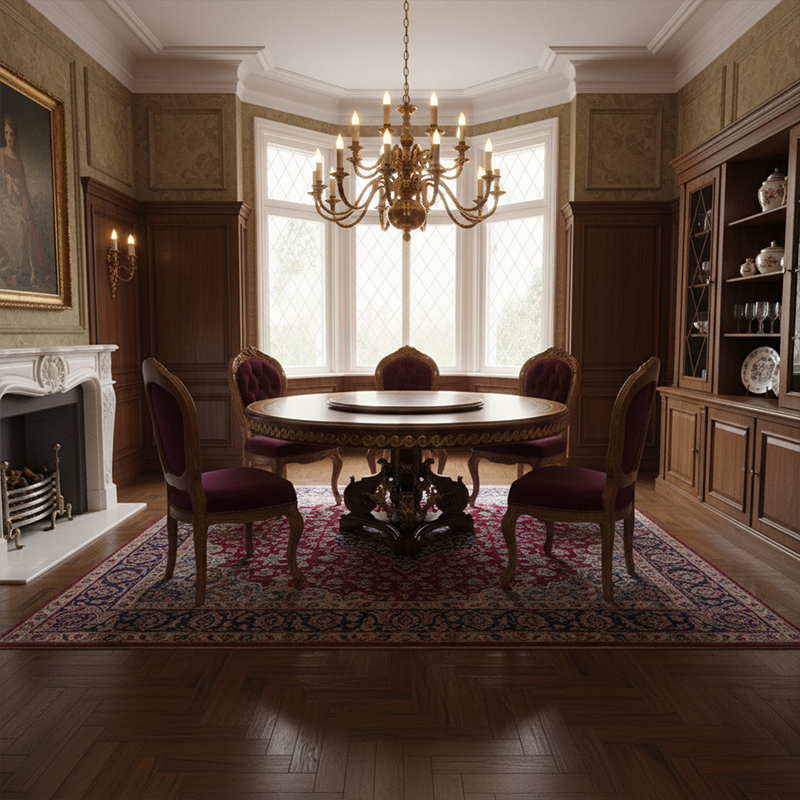 EKAR Sovereign Imperial Round Dining Table | Luxury English Style Hand-Inlaid Table with Lazy Susan |