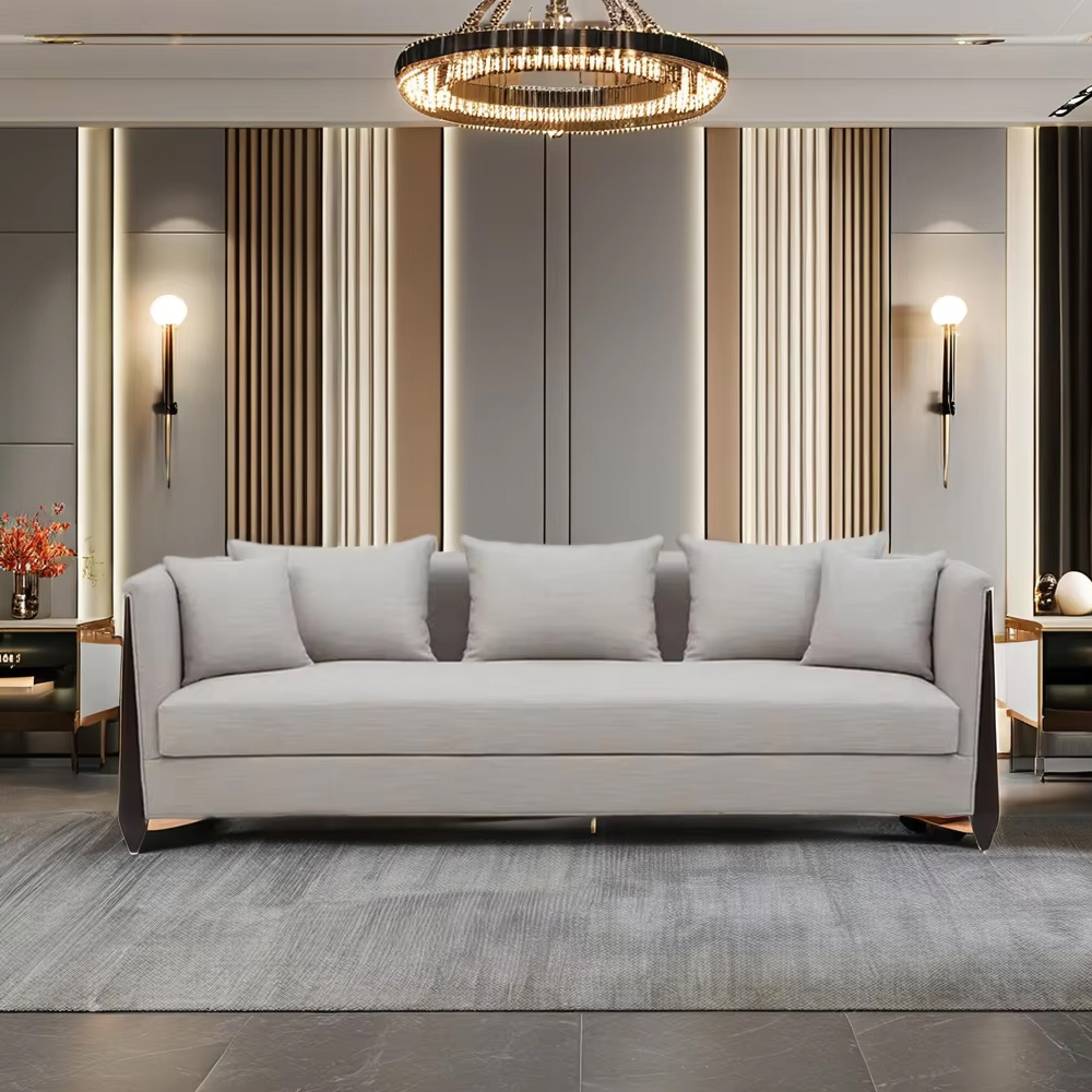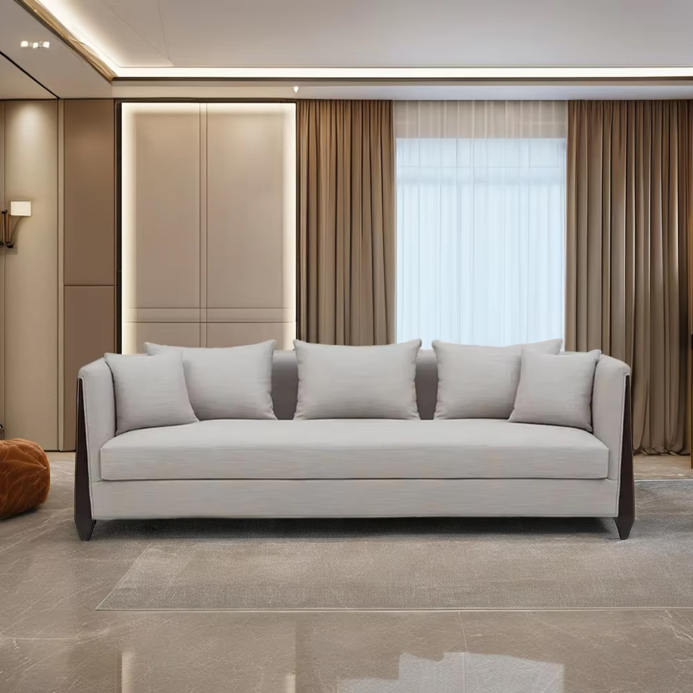 Upgrade your living room with this elegant American-style sofa, featuring sturdy wooden legs and luxurious fabric upholstery.