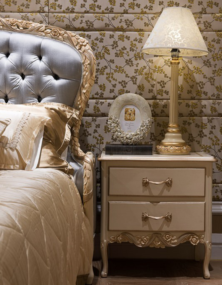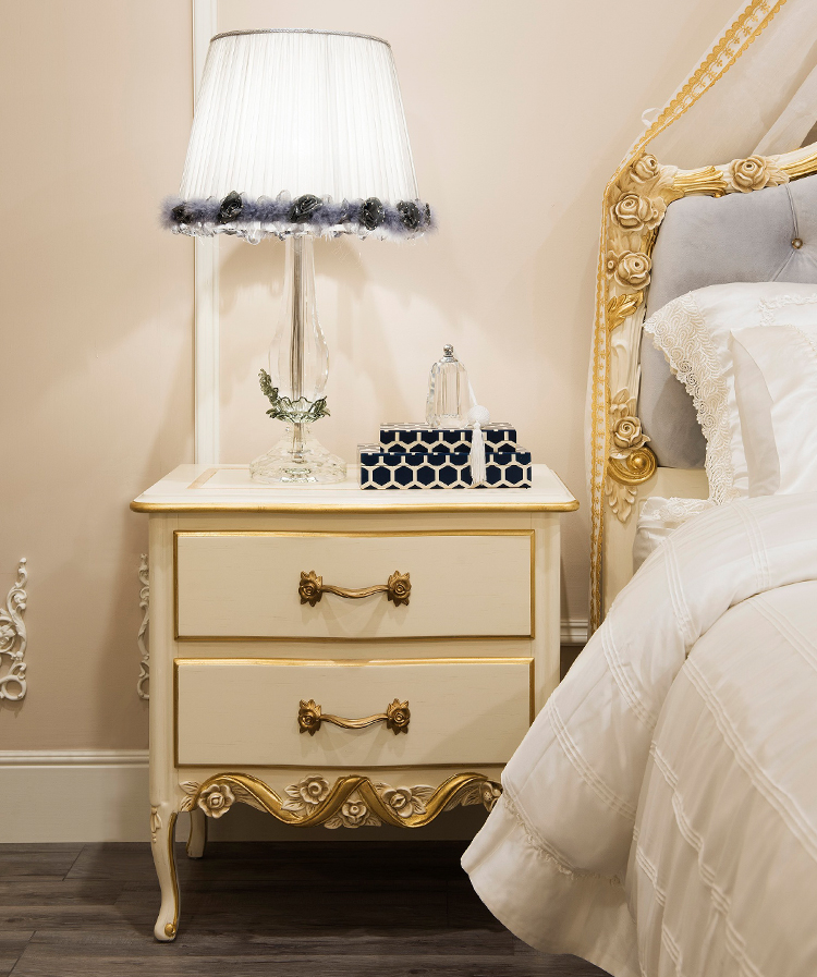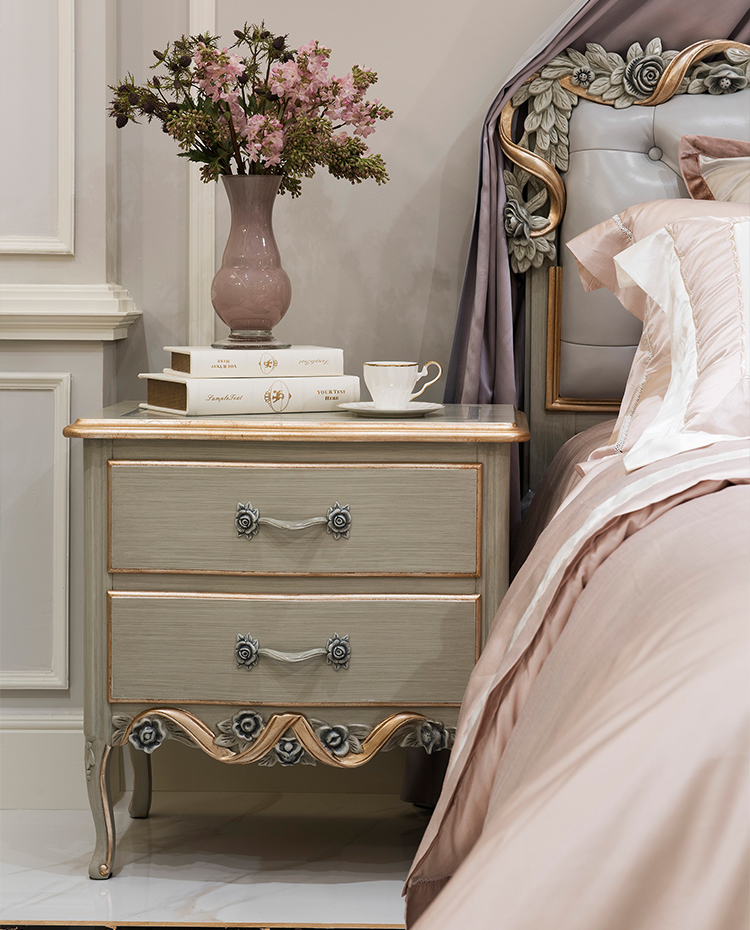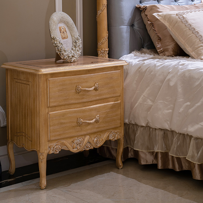 French-Style Wooden Nightstand with Carved Details and Storage
