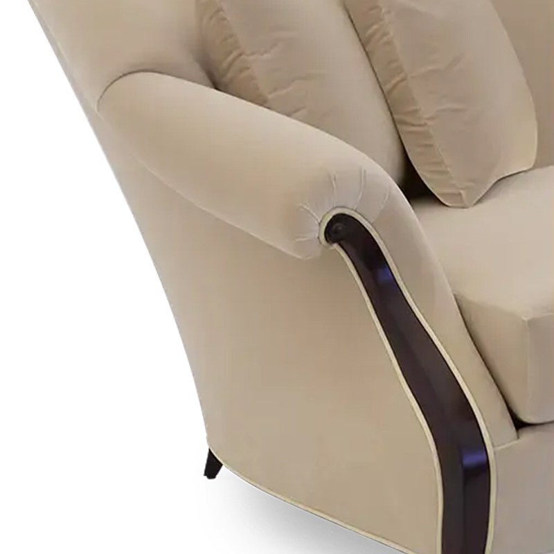 Enhance your living room with this elegant American-style multi-seater fabric sofa, offering plush comfort and sturdy wooden legs.