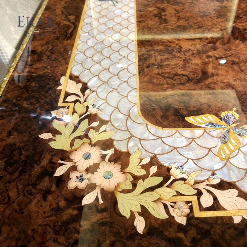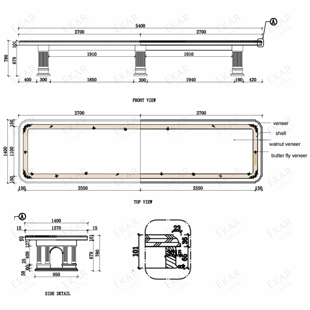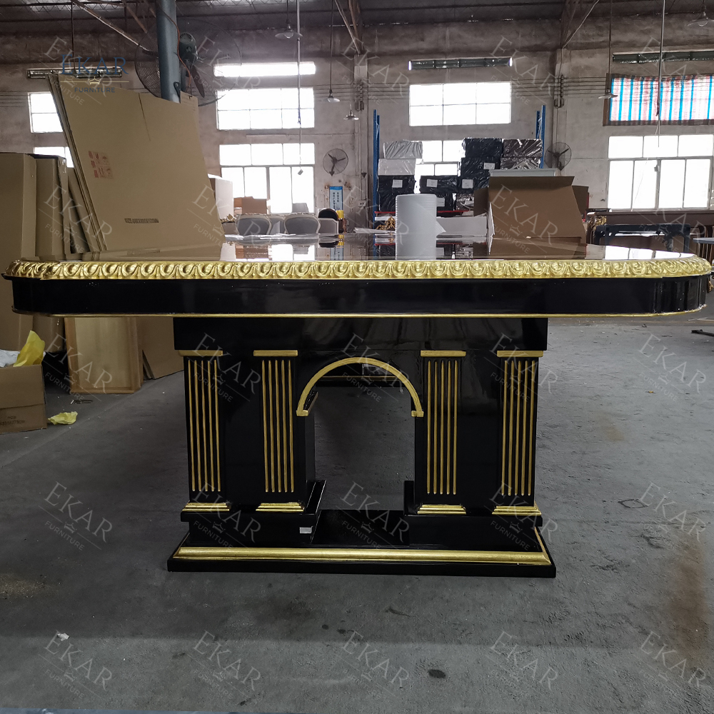 New 5m Customized High Gloss Veneer Dining Table Set